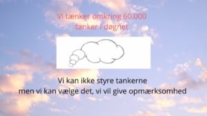 Klienter fortæller ofte, at deres tankemylder kan indeholde lange tankerækker om opgaver, der tårner sig op og om at føle sig utilstrækkelig. Eller indre dialog om “hvad hun sagde, hvad jeg sagde og hvad jeg skulle have gjort, hvorfor andre sagde, som de gjorde”.
